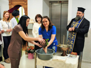 В празничния ритуал участваха още началниците на Родилното отделение и Отделението по неонатология, както и целият медицински екип на клиниката.