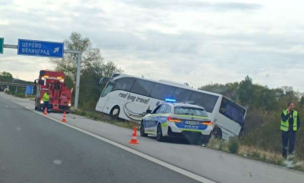 По данни на шофьори автобус е излязъл от пътното платно и се е озовал в крайпътна канавка. В момента превозното средство се изтегля от мястото на произшествието.