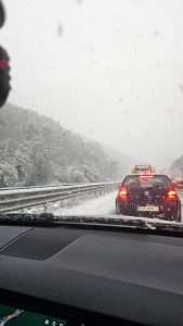Въпреки работата на екипите, очевидци съобщават, че има огромно задръстване при тунел „Витиня“, а пътят все още е непочистен.