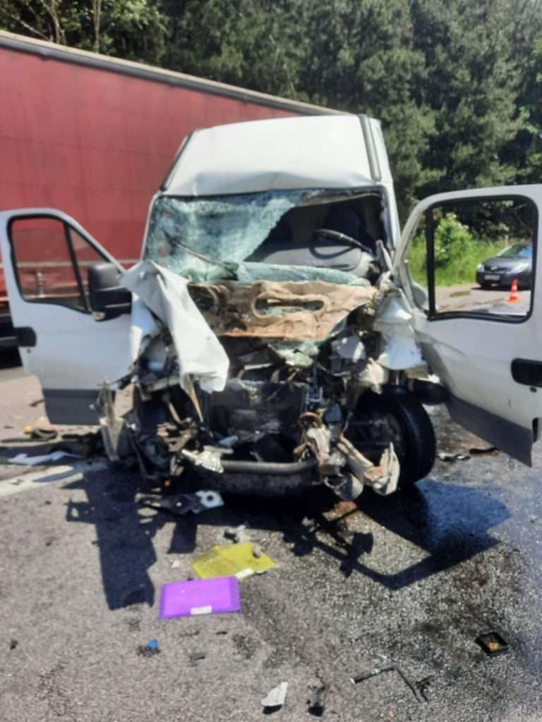 По информация от мястото на инцидента, се е наложила намесата на екипи на пожарната, които са рязали ламарини, за да освободят пострадалия шофьор от буса.