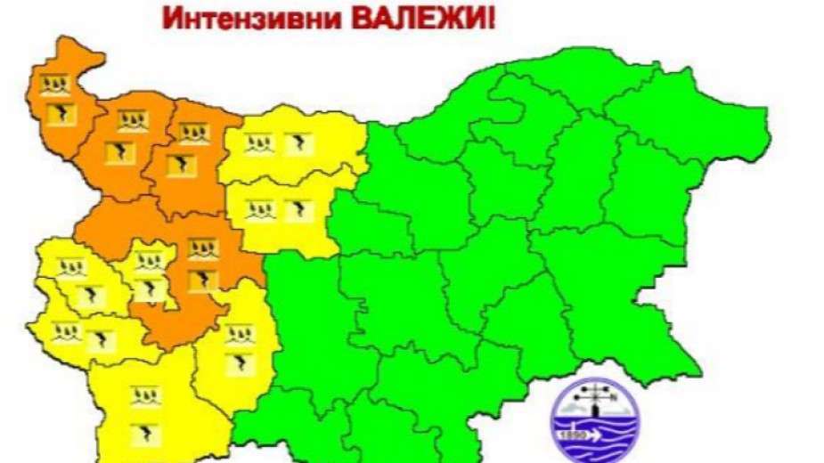 Обявен е оранжев код за 4 области в Северозападна България за интензивни валежи и бури, това са областите Видинска, Монтанска, Врачанска и София област.