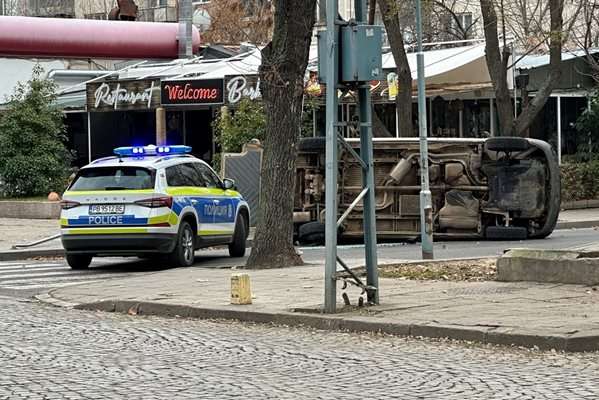 Движението през кръстовището на улиците „Скопие“ и „Братя Бъкстон“ в пловдивския квартал „Кючук Париж“ е ограничено. На пътя се е обърнал бус, който пречи на автомобилите да минават.