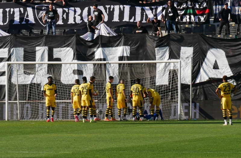 Инцидентът се случи в 41-ата минута на мача, при резултат 1:1, когато бутилка, хвърлена от сектора на домакините, улучи стража на „жълто-черните“.