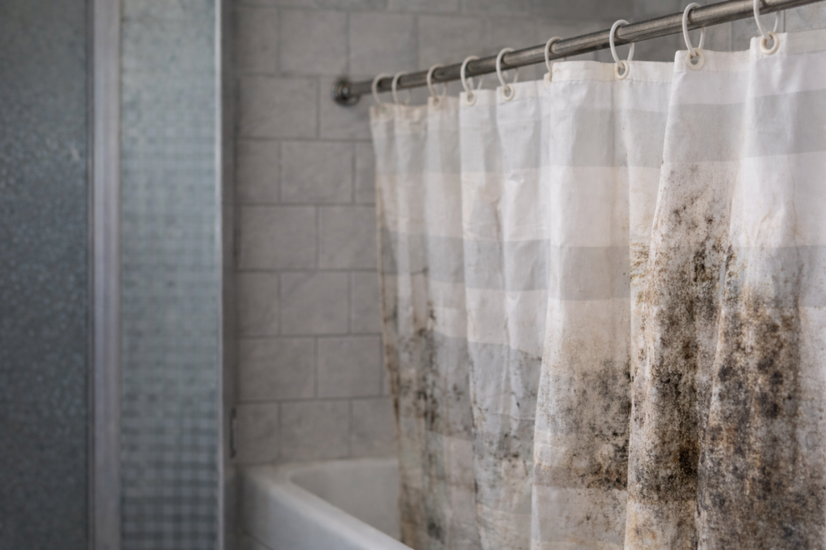 Когато банята не се проветрява добре, парата и влагата от душа се задържат във въздуха. Така се създава идеална среда за развитие на мухъл, особено върху завесата за душ. Мухълът се образува върху плоски повърхности, когато плат или пластмаса останат влажни твърде дълго и нямат възможност да изсъхнат напълно. А тъй като завесите са постоянно изложени на вода, те често са първите, които показват последствията от натрупаната влага.
