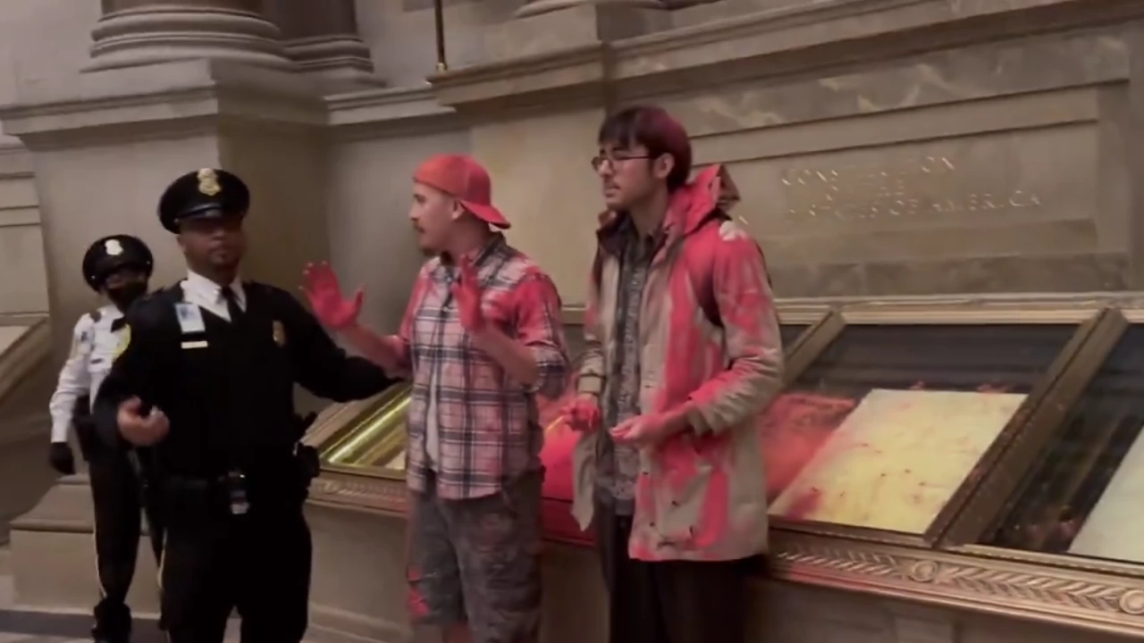 BREAKING: Climate activists just ruined the display of the Constitution in the Rotunda of the National Archives in DC. They poured red powder on themselves and the display.