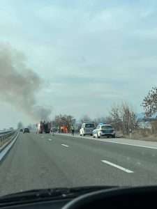 Горящ автомобил на АМ „Тракия“ край 94-ти км – няма пострадали (Снимки)