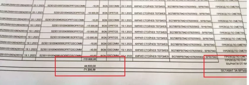 От документите, представени от Гущеров, става ясно, че суми от порядъка на 44,600 лева са преведени на Терзиев, като част от цялостните трансакции между двамата. Гущеров настоява, че Терзиев трябва да бъде задържан и съден за престъпните си действия.