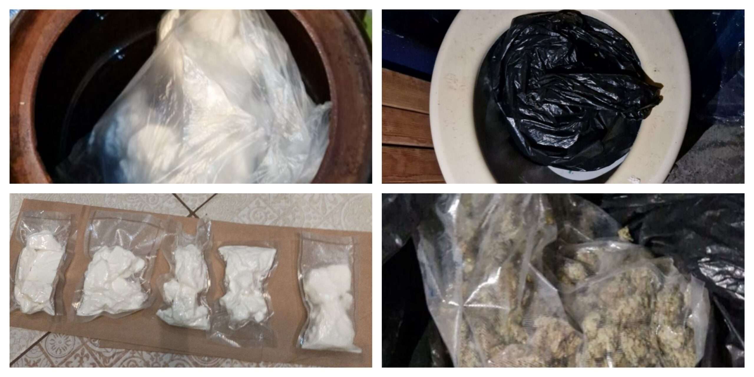 Криминалистите пристъпили към претърсване на адреса на 39-годишния пласьор, в хода на което иззели чувал с малко над половин килограм канабисови съцветия, укрит в тоалетна чиния, а от посуда в кухненски шкаф – бучки бяло прахообразно вещество, реагиращо на амфетамин.