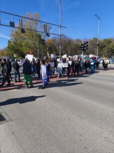 Със скандирания „Искаме си директора!” и плакати с надписи „Д-р Генев е един от нас” и „Да на медицината, не на задкулисието” медиците от УМБАЛ–Пловдив излязоха на протест и за кратко блокираха кръстовището на бул. „България“ и ул. „Дилянка“. Те изразиха недоволството си от резултатите от конкурса за нов управител на болницата, предава репортер на NewsPoint.bg.