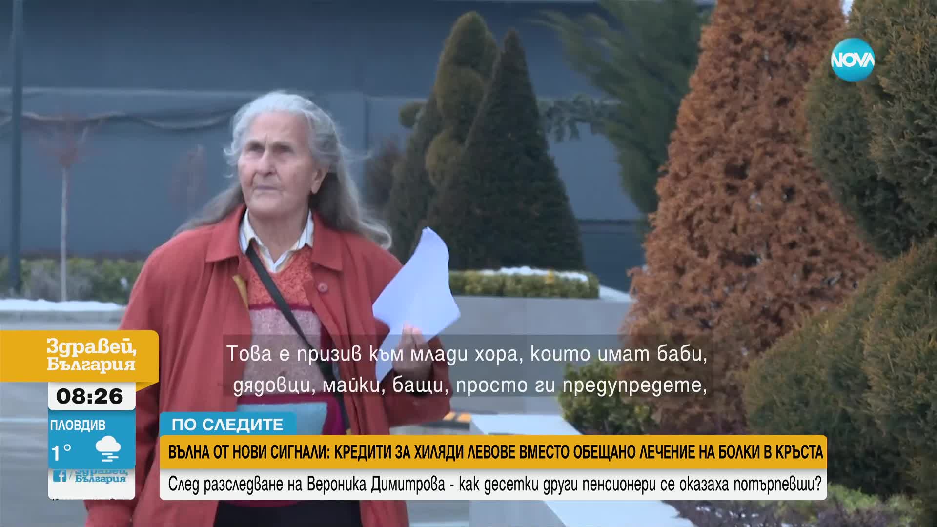 Изкушени от покана за безплатни прегледи и лечение на болки в гърба и в кръста, няколко души от цялата страна, сред които и пенсионери, са се сдобили със стокови кредити на стойност близо 7 000 лв.