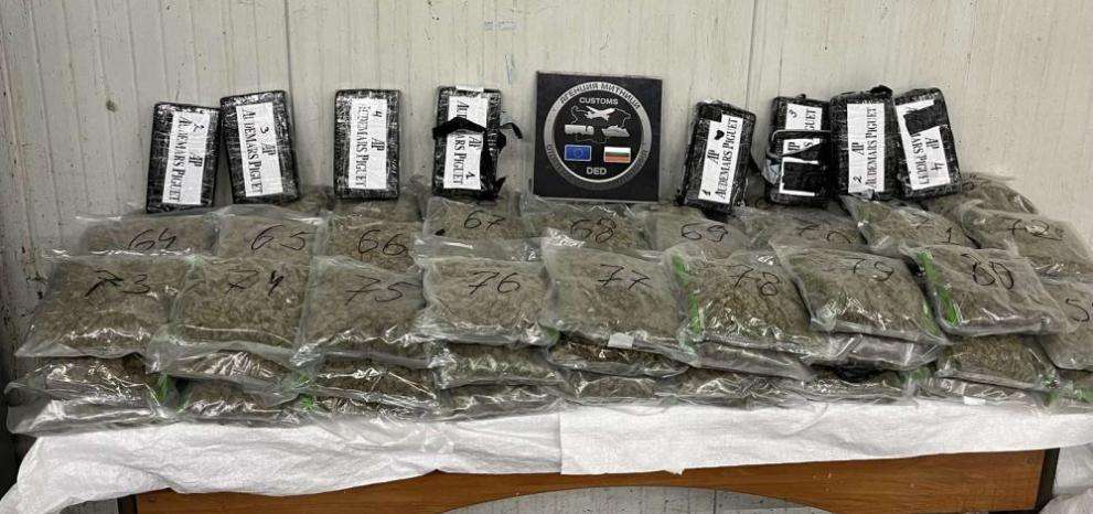 Във фабрични кухини в задните врати, както и в три специално изградени тайника в пода на автомобила са открити 80 пакета марихуана с бруто тегло е 22.08 кг.