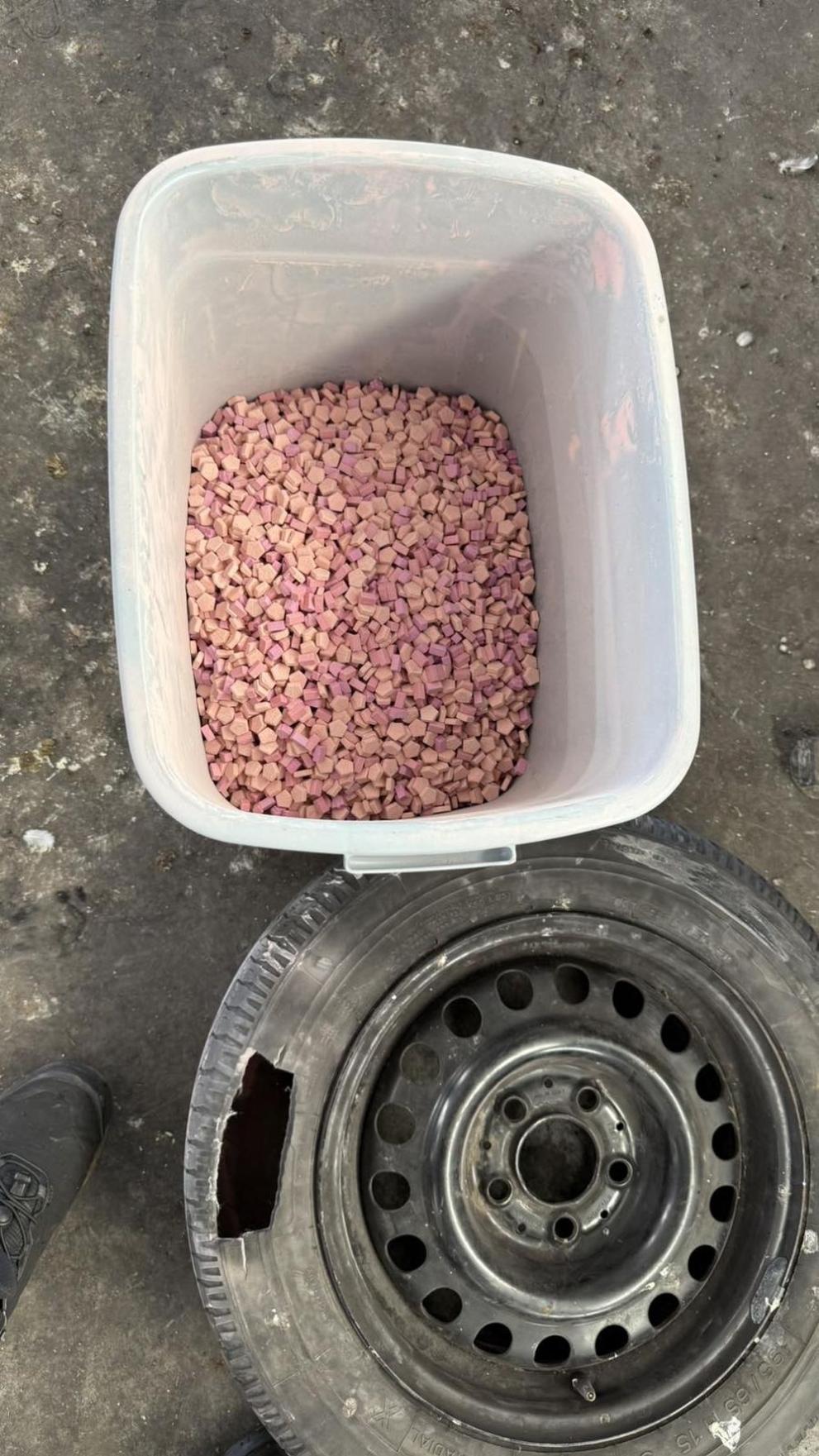 Направеният наркотест на таблетките е отчел реакция на метамфетамин с бруто тегло 18.410 кг на стойност 441 840 лева. По случая се води разследване под надзора на прокуратурата.
