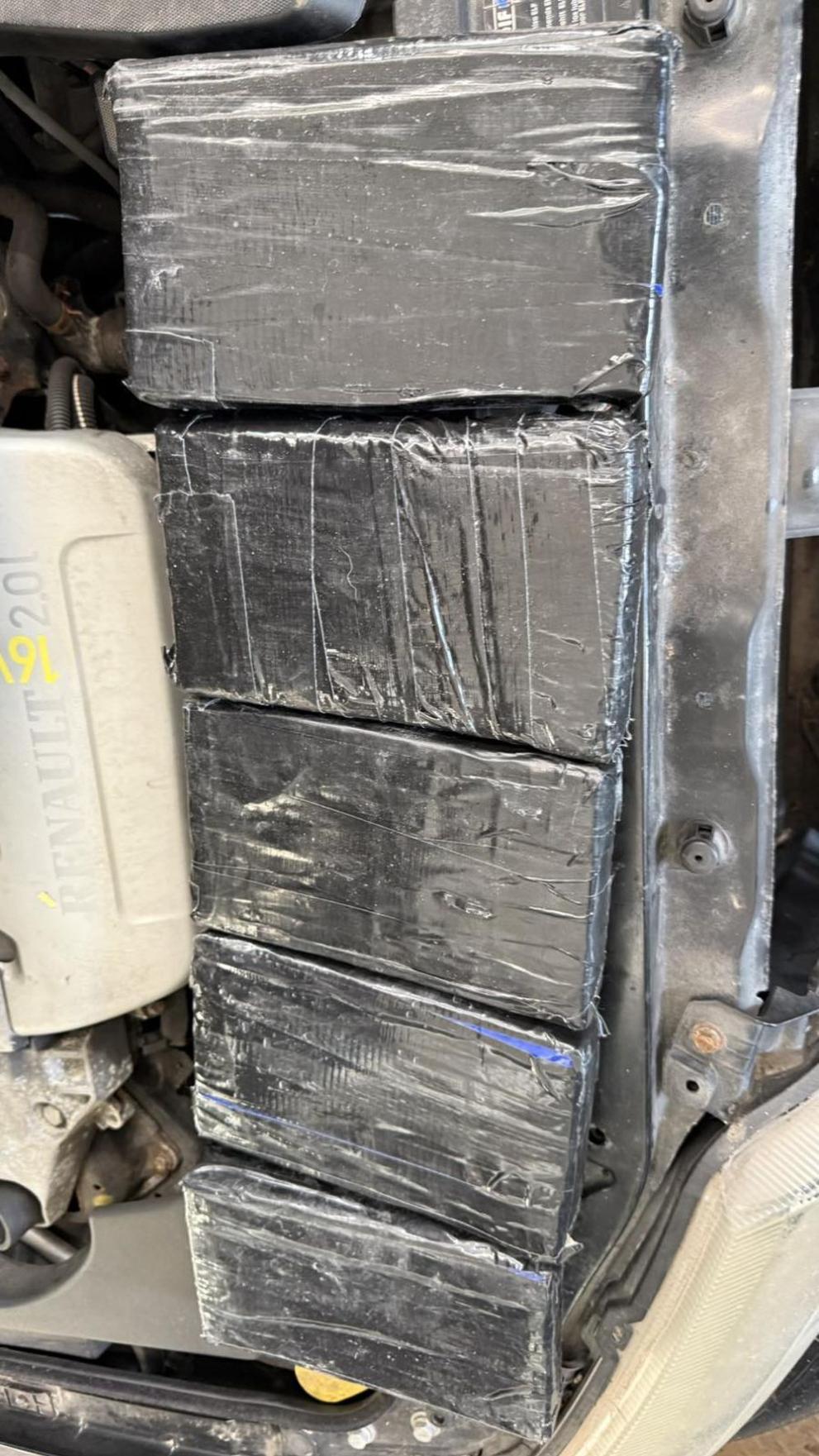 Те заявили, че не пренасят стоки, подлежащи на забрани и ограничения при износ. Във фабрична кухина на двигателния отсек са открити пет пакета с кокаин.