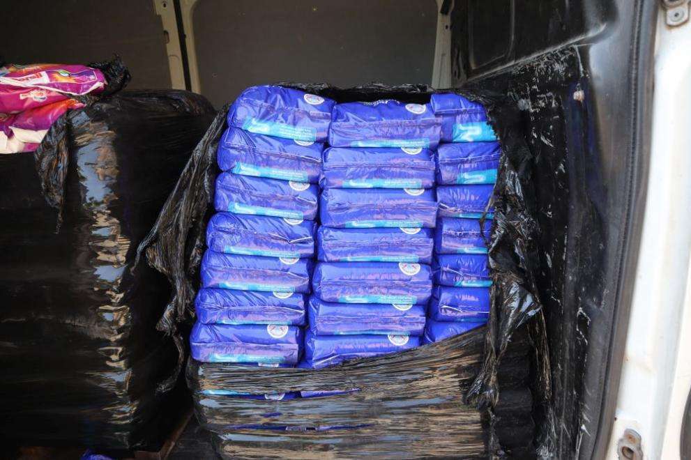 В условията на неотложност последвало претърсване в складово помещение, наето от мъжа, където били установени още 288 пластмасови туби с вместимост 5 литра и 60 десеткилограмови пакета, етикирани с известни марки за перилни препарати. Стоката е иззета по надлежния ред.