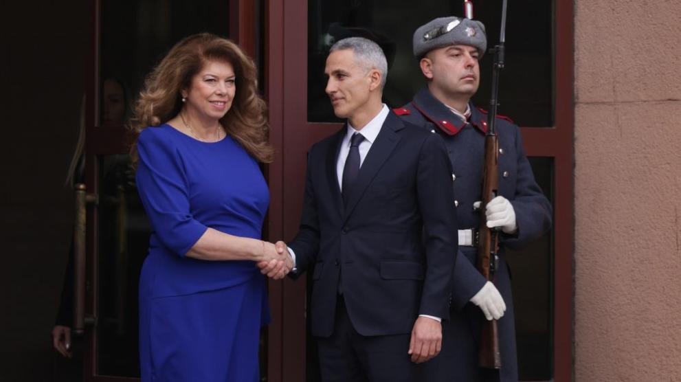 Йотова го посрещна на входа на президентството.