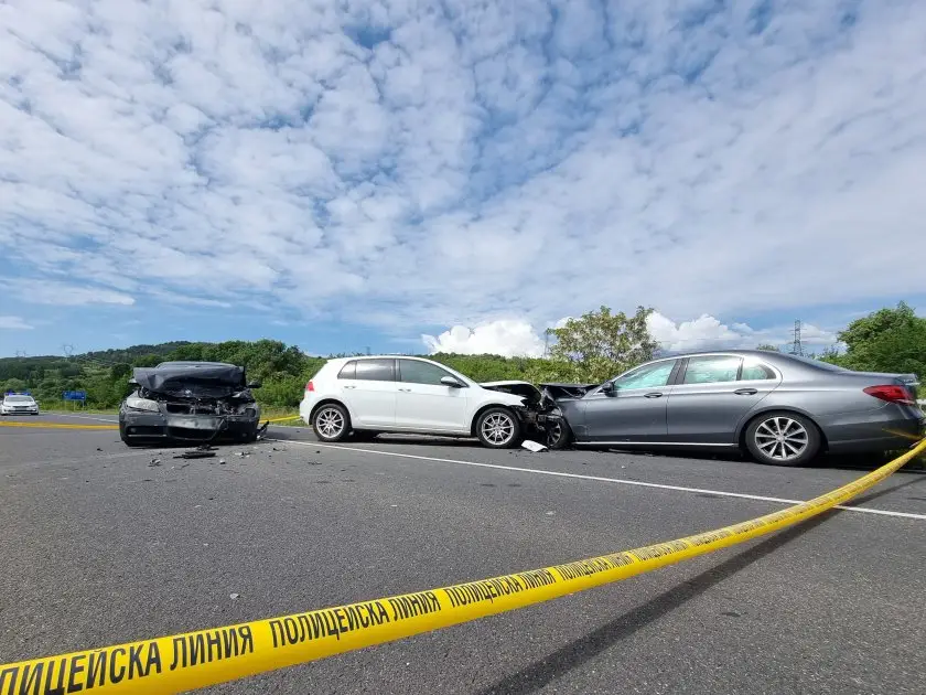 Сигнал за катастрофата между три автомобила – „Фолксваген“, „БМВ“ и „Мерцедес“, е подаден тази сутрин в 8,45 часа, потвърдиха от полицията.