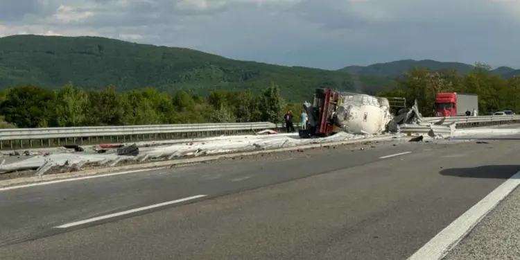 Бетоновозът е скъсал мантинелата и е навлязъл в насрещното платно за движение.