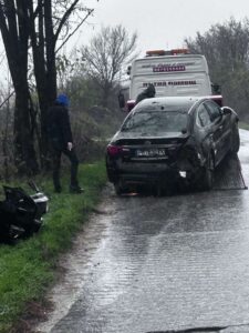 Лек автомобил е излязъл от пътя към село Марково в участъка преди хотел в района. Инцидентът е станал при силен дъжд и мокра пътна настилка.