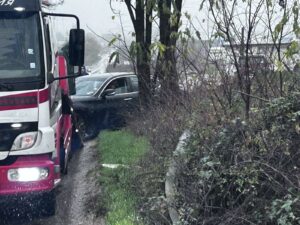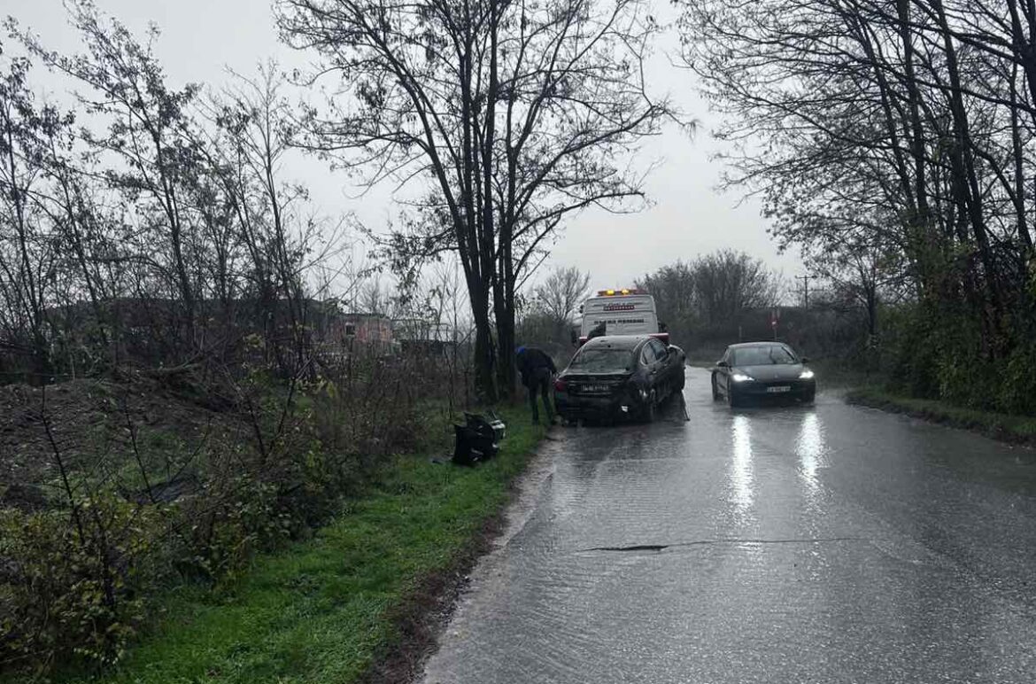 Лек автомобил е излязъл от пътя към село Марково в участъка преди хотел в района. Инцидентът е станал при силен дъжд и мокра пътна настилка.