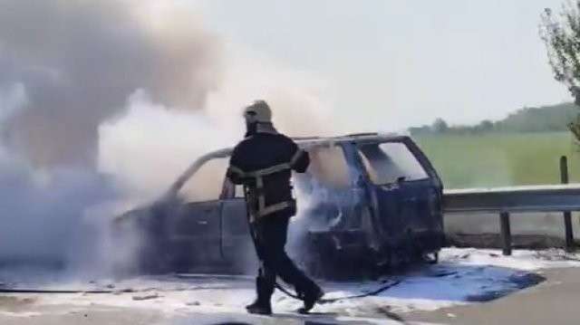На място има полиция. Колата е изгоряла напълно, но няма пострадали хора. Пристигналите на място огнеборци са загасили и запалените около автомобила сухи треви.