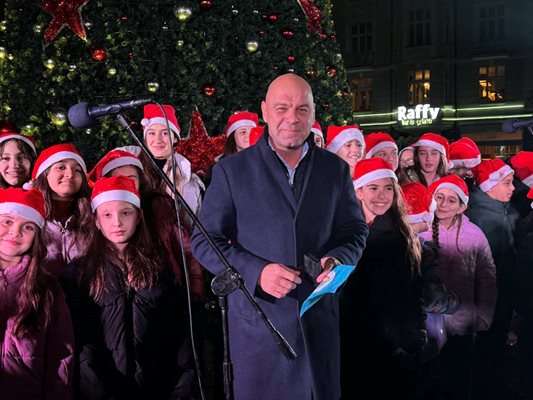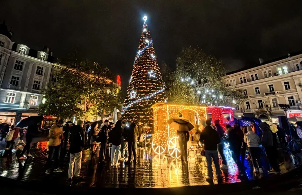 Преди минути грейнаха светлините на коледното дърво пред сградата на община Пловдив.