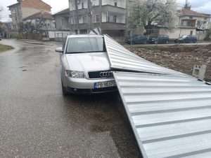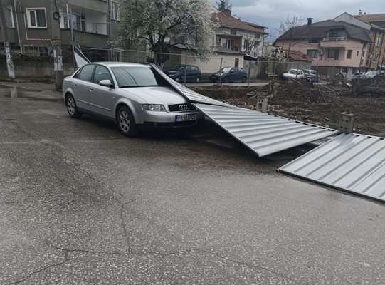 Ламаринена ограда рухна под напора на силния вятър и затисна паркиран автомобил в квартал Прослав, съобщава Стефан Петков в групата „Забелязано в Прослав“. Инцидентът е станал в късния следобед, когато времето се влошило.