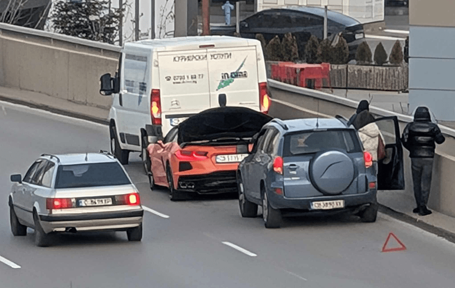 От последните минути: Лъскав оранжев Corvette C8 се заби в бус на спедиторската компания „In Time“ в оживен район на столицата. Инцидентът е предизвикал краткотрайно задръстване, но за щастие няма пострадали.
