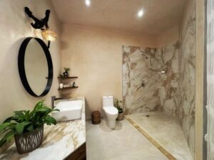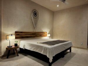 Естествени материали: Използвани са екзотично тиково дърво, камък и традиционен мексикански „чукум“.