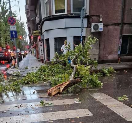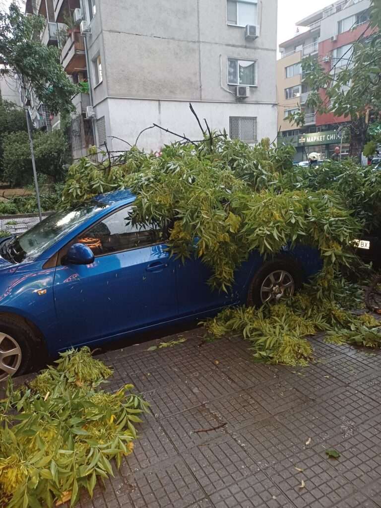 Клони са паднали и върху автомобили , сигнализират читатели. Подадени са сигнали към 112, екипи на Пожарната освобождават колите от падналите дървата. Няма информация за пострадали хора.