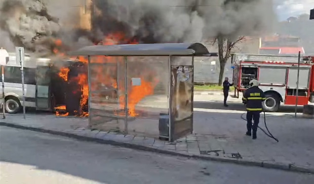 Маршрутно такси от градския транспорт се е запалило по време на движение в близост до спирка на ул. „Съединение“ в Асеновград.
