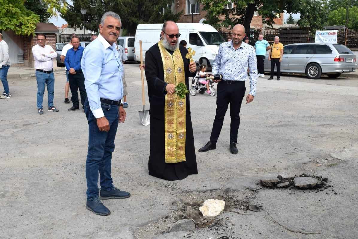 Отец Красимир благослови начинанието, след което Димитър Иванов постави камък в основата на градежа, а кметът на Калековец Георги Вълков ритуално разби шампанско в багера, който стартира ремонта на пътния участък.