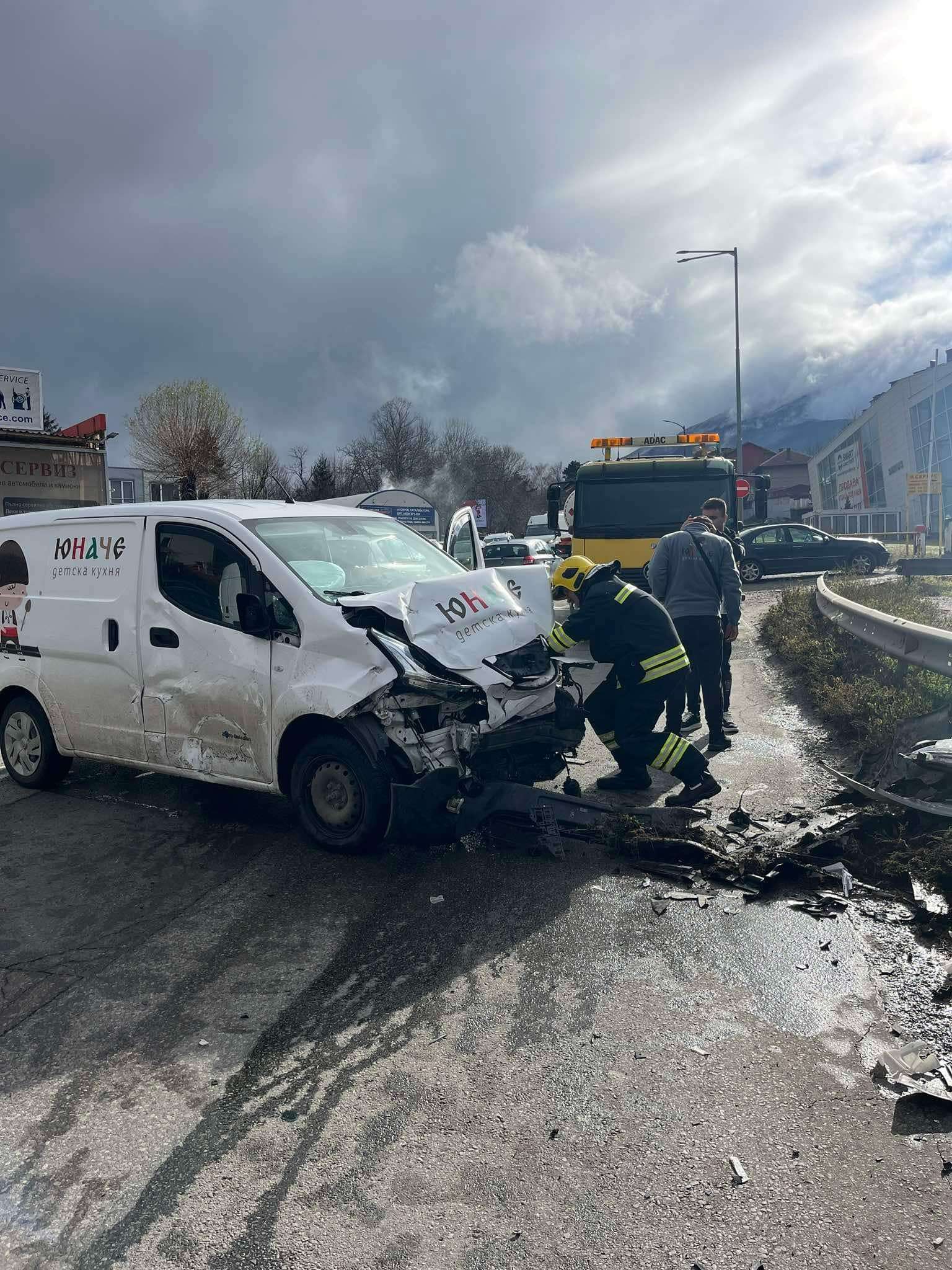 Видно от публикации в социалните мрежи единият от участниците в катастрофата е бус за доставка на детска кухня. Другият автомобил „Хюндай“ е застанал перпендикулярно на пътното платно.