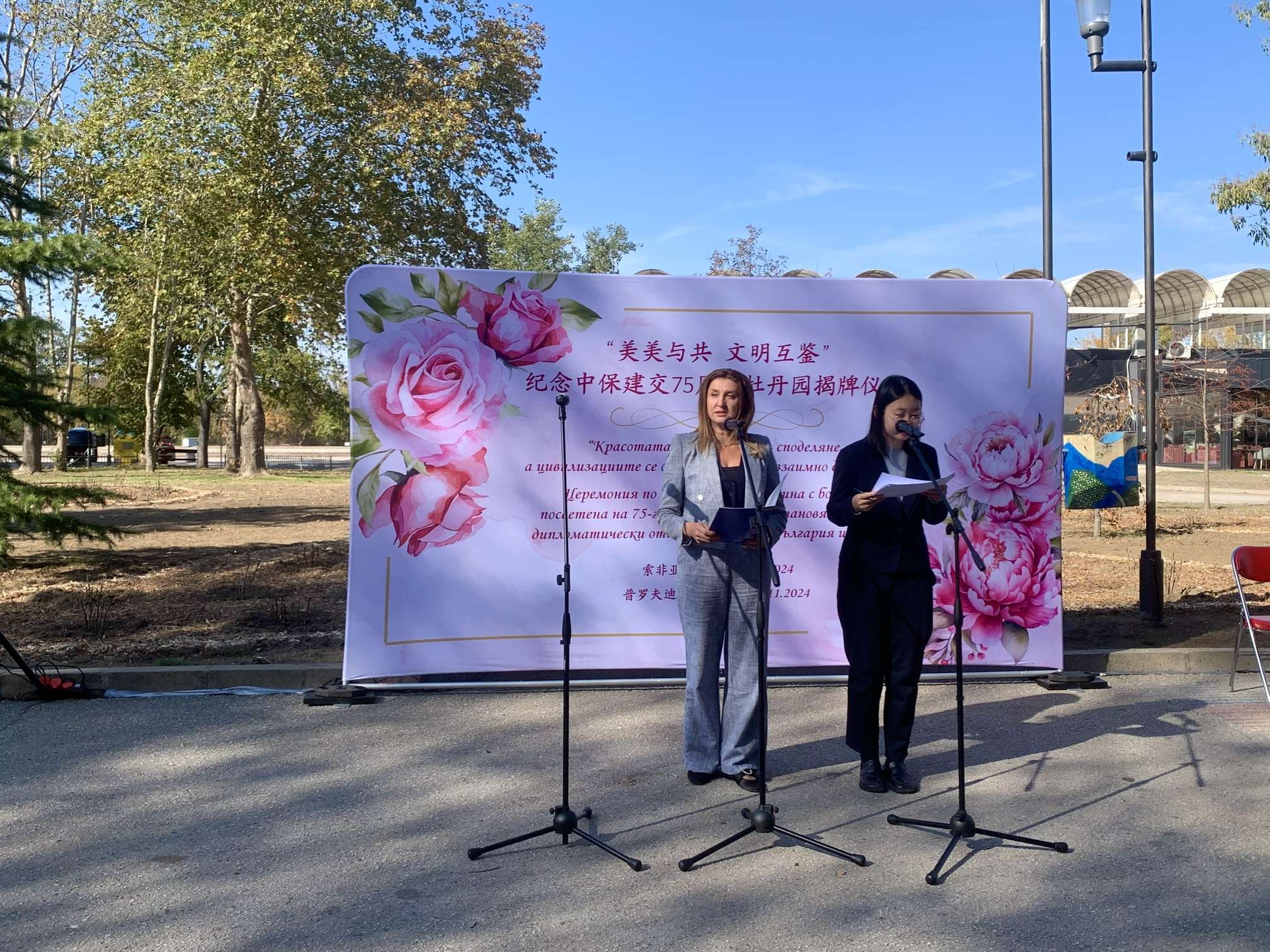 „Божурът е смятан за „краля на цветята“ в Китай, символ на богатство, късмет и просперитет. България, от своя страна, е известна като „страната на розите“, а розата символизира любов, хармония и красота. Очаквам с нетърпение следващата пролет, когато китайските божури и българските рози ще разцъфнат заедно на тази земя, предоставяйки на пловдивчани едно живописно място, което да радва очите и омагьосва душите“, заяви в приветствената си реч зам.-ръководителят на посолството на Китай в България Уан Мин.