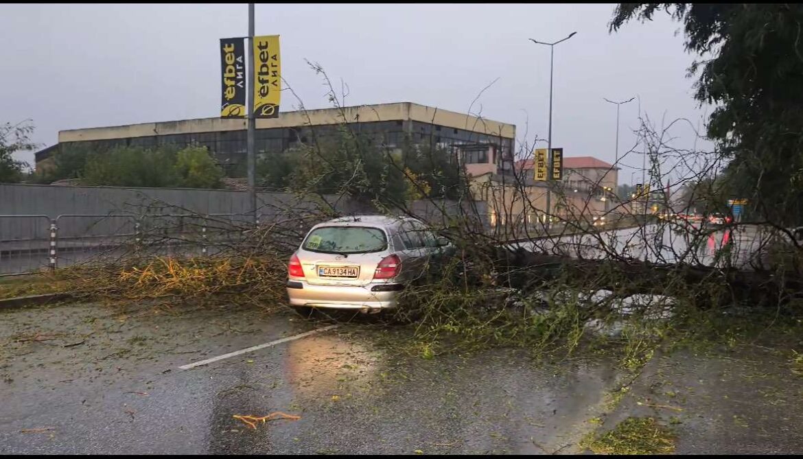 Огромно дърво блокира входа на Пазарджик, падна върху автомобил с бебе вътре (Видео)