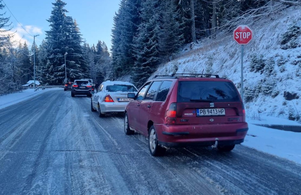 Заледяване затруднява движението по пътя Пампорово–Смолян. В района на курорта са се образували колони от леки автомобили, изчакващи да преминат. Снегът, паднал в следобедните часове, е около 2–3 сантиметра, но рязкото понижение на температурите е довело до образуване на ледена настилка.