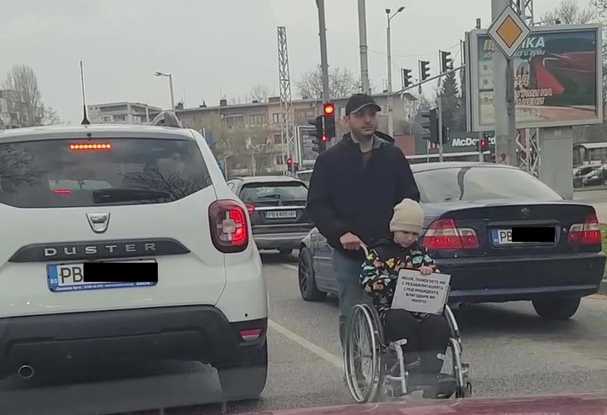 Притеснителна ситуация предизвика сериозни реакции сред гражданите в Пловдив, след като мъж беше заснет да се движи между автомобилите на натоварено кръстовище, бутайки инвалидна количка с дете в нея.
