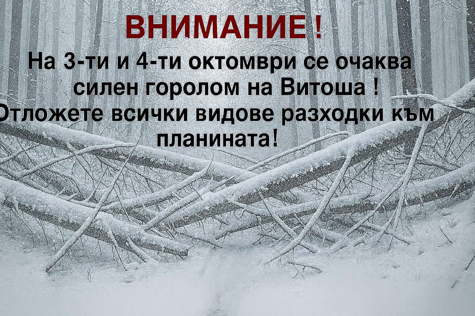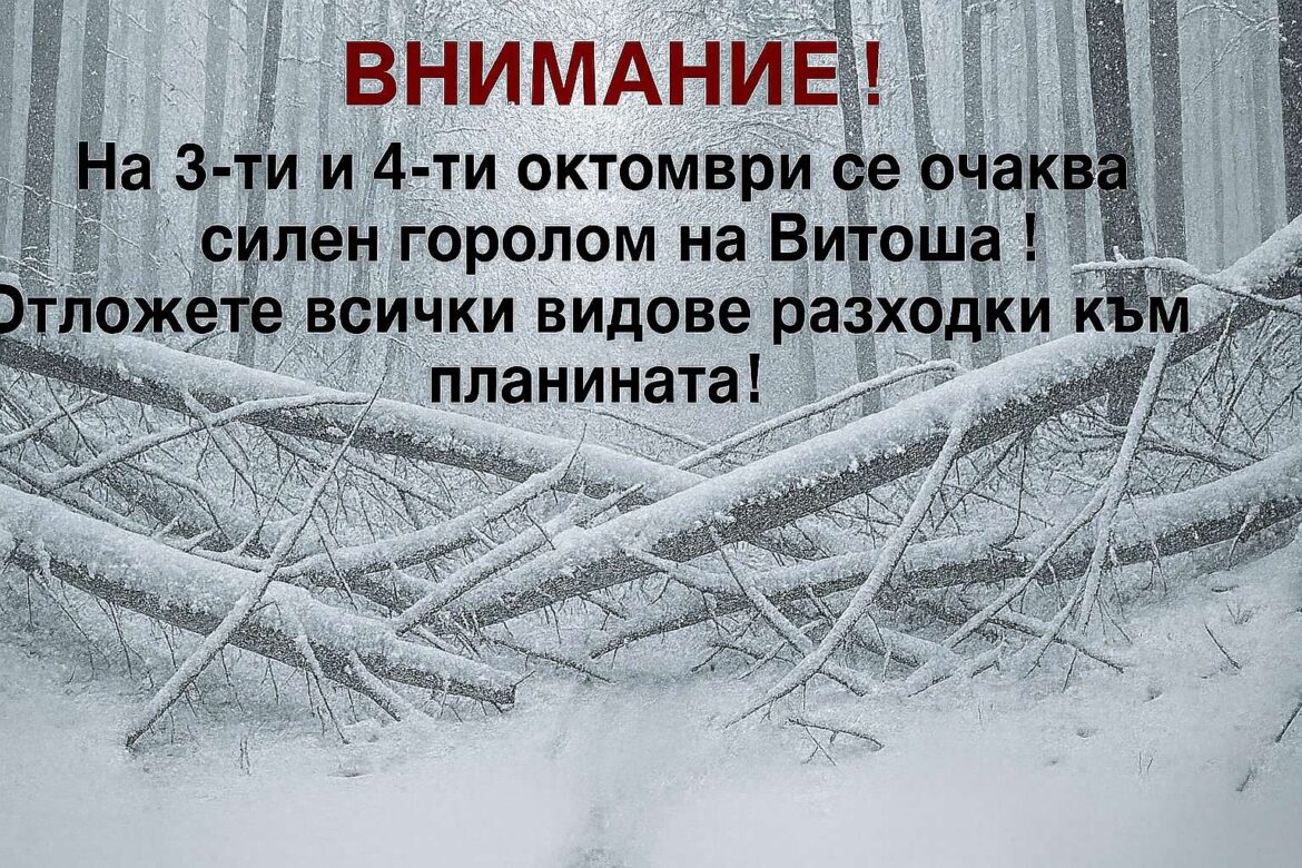 От природния парк съветват туристите по възможност да отложат разходките си във Витоша до нормализиране на обстановката. Предупреждението включва и вероятност разчистването на пътища и пътеки да отнеме повече време от обичайното.