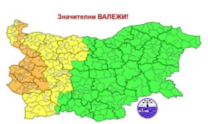 Жълт код за по-слаби, но обилни валежи е в сила за Враца, Плевен, Ловеч, Видин, Благоевград и Пазарджик.