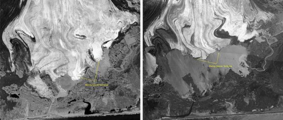 Според Маури Пелто, глациолог от колежа „Никълс“, двата ръкава на ледника Алсек са се отдръпнали с повече от 5 километра от 1984 г. насам.
