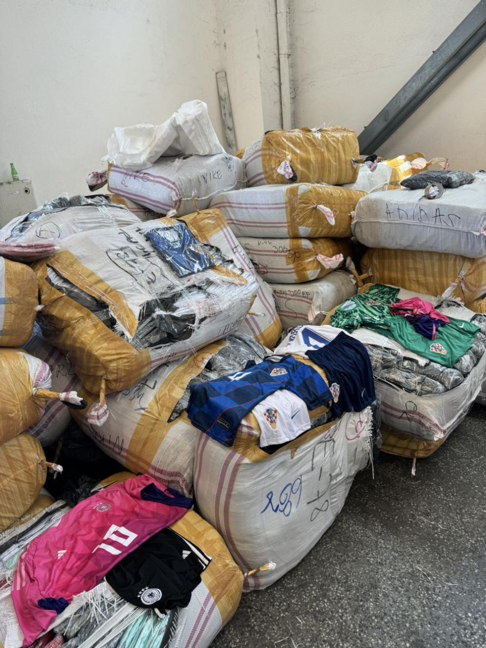 На част от тениските са изписани и имената на известни футболисти. В колетите са открити още 160 чифта спортни обувки и 118 чанти със знаци на известни спортни марки.