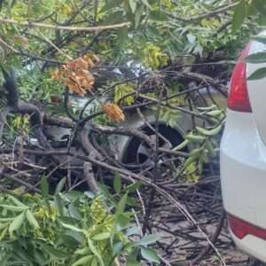 Голям клон падна върху автомобили в Кючука, за което съобщиха потребители във Фейсбук групата „Забелязано в Кючука“.
