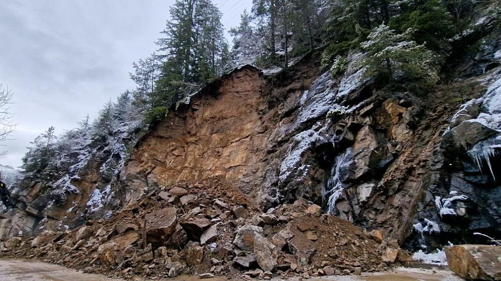 Скалните късове са се свлекли на пътното платно към 3:00 ч= тази сутрин при 62 километър.