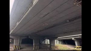 Парчe бетон от мостовата конструкция на бул. „Цариградско шосе“ е паднало върху движещ се автомобил по бул. „Брюксел“ в София.
