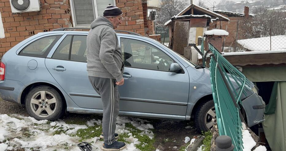 Превозното средство е спряло в ограда, която предотвратила падането му в двора на къща. Преградата е частично съборена, по автомобила също има щети.