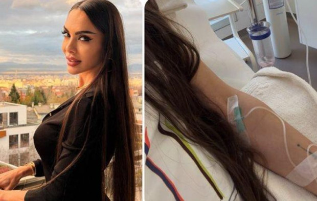На кадрите ясно се вижда ръката ѝ с поставена система, заобиколена от медицинска апаратура, което подсказва, че става дума за специализирана терапия.