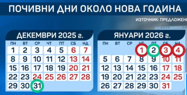 Почиваме на 31 декември и 2 януари