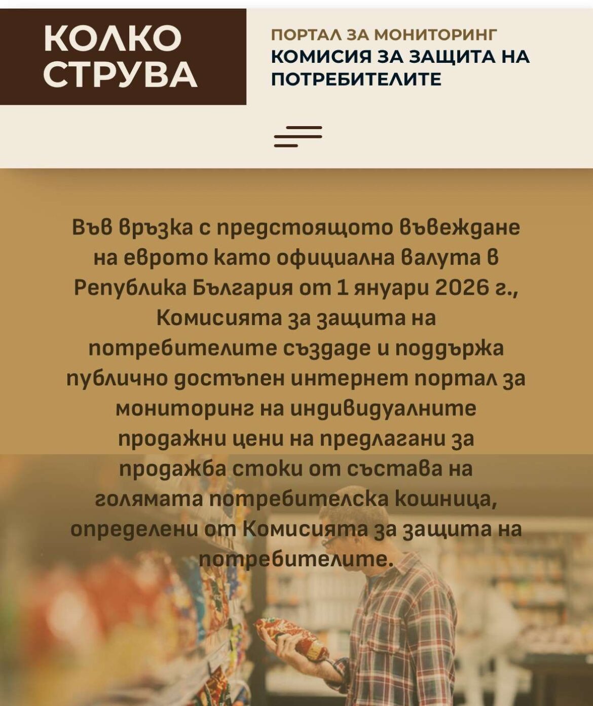 От утре, 30 септември 2025 г., интернет порталът „Колко струва“ (Kolkostruva.bg) ще започне да публикува данни за цените на стоки, предоставени от търговските вериги. Това става ясно от отговор на министър-председателя Росен Желязков до народните представители Божидар Божанов и Ивайло Мирчев.