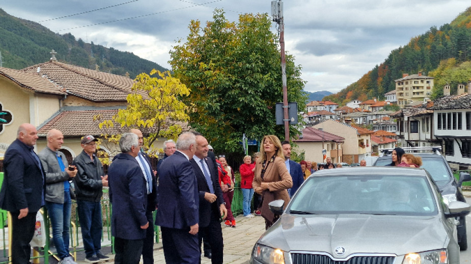 Държавният глава пристигна в Смолян с личния си автомобил, придружен от съпругата си Десислава Радева.