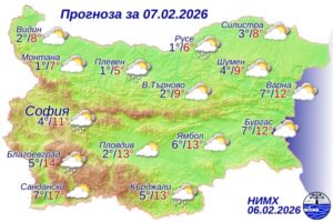 Днес облачността ще бъде променлива, по-често значителна. На отделни места в Западна и Централна България ще превали слаб дъжд. Ще духа слаб, в Североизточна България до умерен западен вятър. Максималните температури в Северна България ще бъдат между 5° и 10°, в Южна – между 11° и 14°, в крайните югозападни райони до 17°, в София 10°-11°, в Пловдив – около 12°-13°.