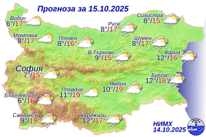 Прогноза за времето сряда – 15 октомври 2025 г.: Слани в Югозападна България